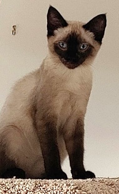 This striking seal point kitten is Nina, from our Jazz litter. She and her siblings were originally rescued as feral kittens, living alone outside. When they first came to us they were scared of people and didn’t really know how to interact. Their dedicated foster family has been working very hard to get them socialized and they are making wonderful progress, so it’s now time to find their forever homes.