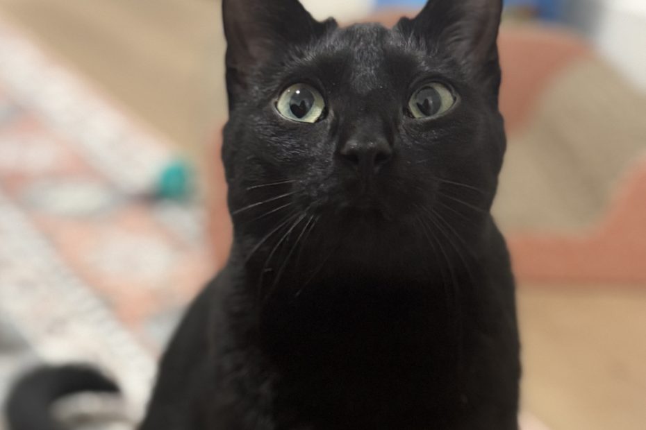 Overall, Nyx is fairly calm. She likes playing, but she’s also good at cuddling and is happy to jump into your lap. She’s great at watching TV and hanging out while her people read. She would love a home where she’s allowed to nestle into the bed at night.